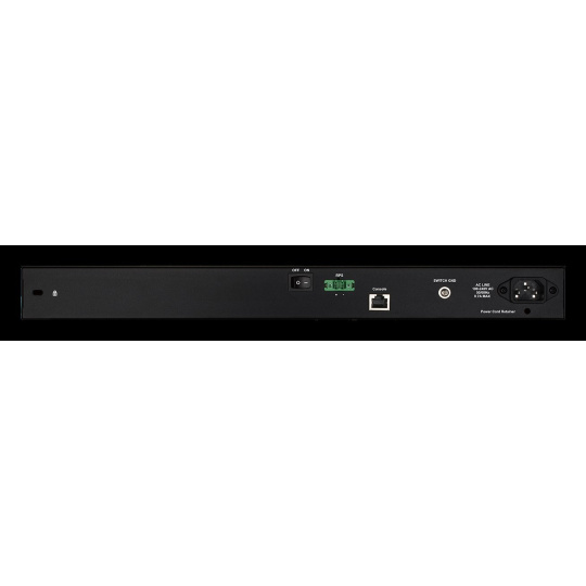 "48-Port 10/100/1000BASE-T + 4-Port 1 Gbps SFP Ports Metro Ethernet Switch - 48 x 10/100/1000BASE-T ports - 4 x 1 Gbps SFP ports - Switching Capacity 104 Gbps - Layer 3 Features: H/W Ver. B1 IPv4/IPv6 Interface (Max. 4 IPv4/IPv6 Interfaces), Static Route, Max. 128 ARP Entries, Supports 255 static ARP entries - Layer 2 Features: Supports IEEE 802.3ad Link Aggregation (Supports max. 8 groups, 8 ports per group), Port-based Q-in-Q, Lookback detection, Spanning Tree Protocols: 802.1D STP, 802.1w RSTP, 802.1s MSTP, 16K MAC address table and Jumbo Frame up to 9,216 Bytes - Quality of Service (QoS) – Bandwidth Control, Queue handling, 8 outbound queues - Management: Web-based GUI (IPv4/IPv6), Full Command Line Interface (CLI) through Telnet, SSH and the console port, D-Link Network Assistant Utility (DNA) - Access Control Lists (ACLs) Security: SSH, Port security (up to 64 MAC addresses per port), IP-MAC-Port Binding (IMBP), Broadcast/Multicast/Unicast storm control, IP Inspection, (IP source Guard), Duplicate Address Detection (DAD), D-Link Safeguard Engine, BPDU/DoS attack prevention, Traffic segmentation - VLAN: Asymmetric VLAN, Voice VLAN, GVRP, Private VLAN, ISM VLAN (multicast VLAN), VLAN trunking - Access Control, Authentication for management access (local/RADIUS/TACACS+) - MTBF 381,999 hours - Acoustic: High Speed: 49 dB(A), Low Speed: 40 dB(A) - Ventilation: 1 x Smart fan - Weight 3.31 kg - 19-inch standard rack-mount width. 1U height. Dimension 440x210x44mm - Surge protection".