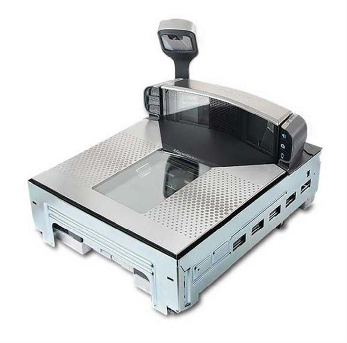 built-in scanner, retail, 2D, sapphire glass, short platter, 6-side, multi-interface (RS232, USB, IBM), incl.: power supply unit (IT).