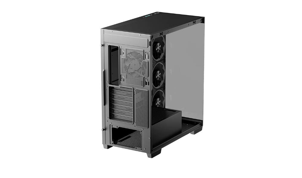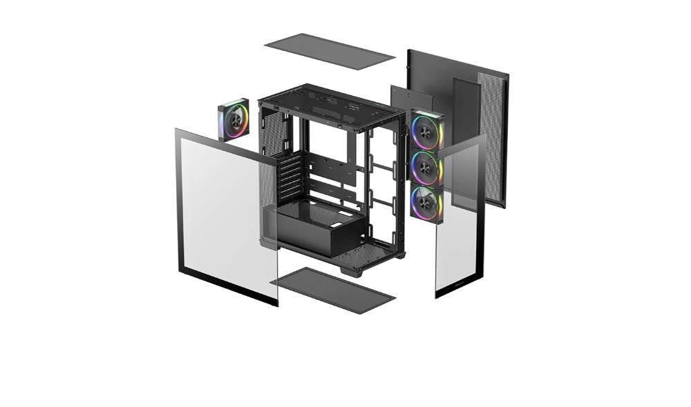 Konstrukce bez středového sloupku spolu s bočním a předním skleněným panelem poskytuje 270° pohled na vnitřní komponenty, takže si můžete svou sestavu plně vychutnat.