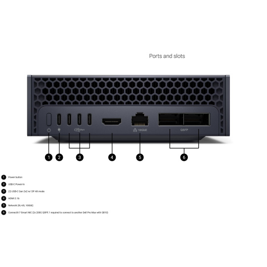 | LAN/NIC | Sieť (RJ-45, 10GbE), ConnectX-7 Smart NIC (2x 200G QSFP, 1 potrebný na pripojenie k ďalšiemu Dell Pro Max s GB10) |