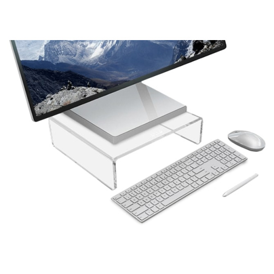 Tento monitorový stojan bol špeciálne navrhnutý pre All-in-One počítače, ako je Apple® iMac, ale skvele sa hodí aj pre bežné LCD monitory. Vyrobený z vysoko kvalitného číreho akrylu v modernom minimalistickom dizajne. Jednoduchý, ale pevný a stabilný dizajn neruší a zároveň poskytuje maximálnu praktickosť. ? Vysoko kvalitný 6mm číry akryl ? Špeciálne navrhnutý pre All-in-One počítače, ako je Apple® iMac ? Možnosť umiestnenia mini počítačov (napríklad Apple® Mac Mini) pod stojan ? Gumené nožičky pre stabilitu a ochranu pracovnej plochy ? Robustná konštrukcia s nosnosťou až 15 kg S DESQ stojanom na monitor zvýšite obrazovku do ideálnej výšky, čo podporuje zdravé a ergonomické držanie tela a pomáha predchádzať bolesti chrbta, krku a očí.