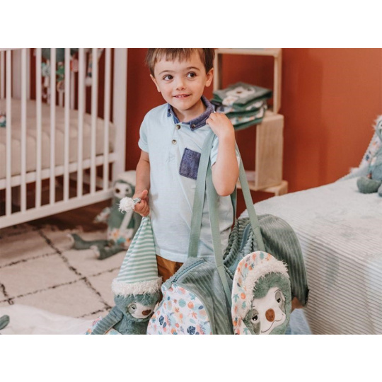 Originálna cestovná taška nemusí byť iba detskou cestovnou taškou, svoje využitie nájde ako športová taška aj ako roztomilá prebaľovacia taška. Textilná taška z príjemného manšestru, v neutrálnom zelenej farbe s lenochodom, pojme všetko, čo vaše dievčatko alebo chlapec na víkend u starkej, na výlet alebo na dovolenku potrebuje. Prezrite si hebkú tašku na hračky, oblečenie, športové aj prebaľovacie potreby.
