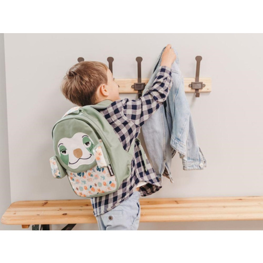 Originálny detský batoh s roztomilým lenochodom je ideálnym zavazadlom pre dievčatká aj chlapcov do škôlky, do školy, na výlety aj na dovolenku. Detský batôžok, s prednou kapsou na suchý zips a vnútornou kapsou na klasický zips, ponúka veľa miesta na všetko, čo je na dobrodružné výpravy potrebné. Široké, pohodlné a nastaviteľné ramenné popruhy sa prispôsobia každému dieťaťu.