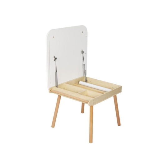 Detský rastúci set nábytku, rastúci stôl s rastúcimi stoličkami, je krásnym doplnkom do detskej izby, ktorý porastie s vaším dieťaťom. Celý set detského nábytku môže vyrásť o 5 alebo 10 cm. Pod doskou stolu sa ukrýva praktický úložný priestor, súčasťou je držák na rolu papiera aj magnetický držák priamo na doske stolu. Vďaka neutrálnym farbám je detský stolček s stoličkami vhodný pre dievčatká aj chlapcov, do každého interiéru.