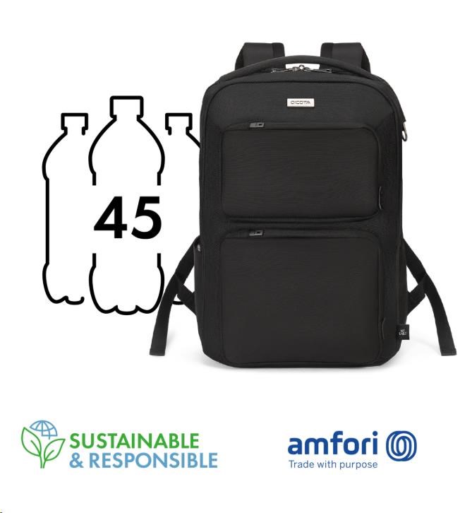 Vnější a vnitřní materiál vyrobený z 45 recyklovaných PET lahví.