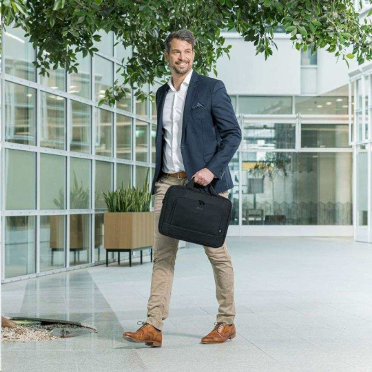 Kompaktné puzdro Eco Traveller BASE ponúka ideálnu ochranu pre notebooky s veľkosťou 15 až 15.6" vďaka výplni z peny s vysokou hustotou (HDF). Puzdro zaručuje extra stabilitu a ochranu vďaka kovovému rámu, ako aj flexibilnú mobilitu vďaka ľahkej konštrukcii. K dispozícii je extra priehradka, do ktorej môžete ľahko uložiť dokumenty. Smartfón alebo iné menšie predmety, ako sú káble, perá alebo nabíjačky, si môžete uložiť do praktického predného vrecka, aby ste ich mali vždy po ruke. Kufrík sa pohodlne prenáša vďaka neoprénovej polstrovanej rukoväti a vďaka zabudovanému popruhu ho možno v priebehu niekoľkých sekúnd pripevniť ku kufru. Kufrík môžete prenášať aj pomocou nastaviteľného ramenného popruhu. Puzdro Eco Traveller BASE je preto pre vás ideálne, ak ste stále na cestách a chcete podporiť recykláciu PET fliaš ekologickým puzdrom.