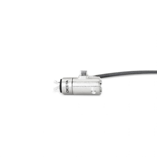 Hlavicu T-Lock použijte pre sloty 3x7 mm, Wedge pre sloty 3,2x4,5 mm a Nano pre sloty 2,5x6 mm. Kompatibilný s úzkym bezpečnostným slotom Noble Wedge®, bezpečnostným slotom Kensington® pre T-Bar™ a úzkym bezpečnostným slotom Kensington Nano™*. Dlhodobé riešenie. Vďaka ľahko vymeniteľným hlavičkám môžete neskôr zariadenie vymeniť a bezpečnostný zámok naďalej používať. Rýchle, jednoduché a spoľahlivé. Využívajte veľkú flexibilitu pri usporiadaní svojho pracoviska vďaka hlavici otočnej o 90° a cylindrickej vložke otočnej o 360°. Je to rýchle, jednoduché a spoľahlivé. Opláštené, viacžilové oceľové lanko je 30 cm dlhé a mimoriadne pevné s priemerom 4,4 mm. Vďaka praktickému suchému zipsu je možné oceľové lanko srolovať pre kompaktné skladovanie a prepravu. Tento zámok je v samostatnom prevedení a nie je možné ho integrovať do väčšieho uzamykacieho systému. Noble Wedge®, Kensington®, T-Bar™ a Kensington Nano Security Slot™ sú ochranné známky tretích strán, ktoré nemajú žiadny vzťah ku spoločnosti DICOTA SCHWEIZ AG.