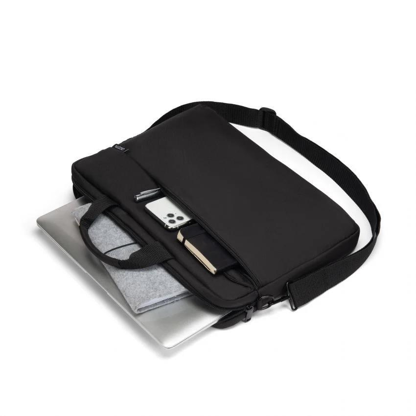 Upevňovací pásik zabezpečuje bezpečné uchytenie bez vykĺznutia. Dokumenty a mobilné príslušenstvo, ako sú chytré telefóny, vizitky, perá atď., sú vždy po ruke v prednej priehradke na zips. Pohodlné nosenie zabezpečuje dĺžkovo nastaviteľný a odnímateľný ramenný popruh a rúčka. DICOTA zdôrazňuje odolnosť rodiny ONE predĺženou päťročnou zárukou.