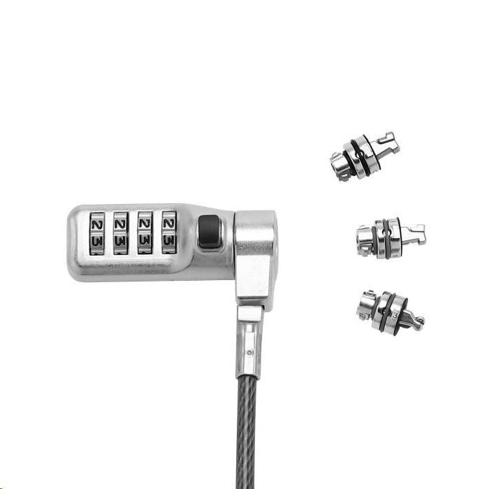 Univerzálny bezpečnostný káblový zámok DICOTA, 3 vymeniteľné hlavy, vhodný do všetkých otvorov, kombinovaný