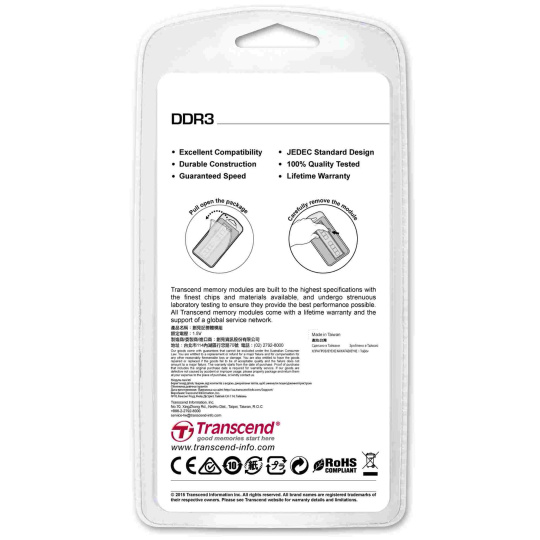 Pamäte DDR3 DIMM od spoločnosti Transcend, ktoré ponúkajú najlepšiu kombináciu spoľahlivosti, rýchlosti a stability, sú vyrobené z najkvalitnejších značkových čipov DRAM a sú prísne testované, aby sa zabezpečilo, že spĺňajú prísne požiadavky spoločnosti Transcend na celkovú kvalitu a výkon. Pamäte Transcend DDR3 unbuffered DIMM sú najstabilnejšie a najspoľahlivejšie v odvetví, čo z nich robí aj ekonomické riešenie pamäte pre všetky stolové počítače.