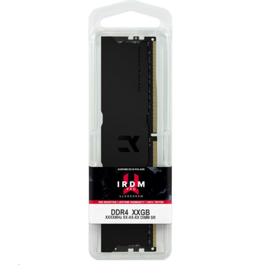 Pamäťové moduly IRDM PRO DDR4 Deep Black sú určené pre hráčov a nadšencov. Ide o dokonalé riešenie určené pre procesory "novej generácie", ktoré budú mať premiéru koncom roka 2020. Moduly sú vyrobené zo špeciálne vybraných pamäťových čipov a 8-vrstvovej čiernej dosky plošných spojov. Všetko je uložené v štýlových chladičoch odvádzajúcich teplo, ktoré sú k dispozícii v novej tmavočiernej farbe.
