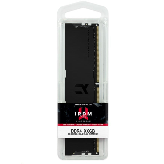 Pamäťové moduly IRDM PRO DDR4 Deep Black sú určené pre hráčov a nadšencov. Ide o dokonalé riešenie určené pre procesory "novej generácie", ktoré budú mať premiéru koncom roka 2020. Moduly sú vyrobené zo špeciálne vybraných pamäťových čipov a 8-vrstvovej čiernej dosky plošných spojov. Všetko je uložené v štýlových chladičoch odvádzajúcich teplo, ktoré sú k dispozícii v novej tmavočiernej farbe.