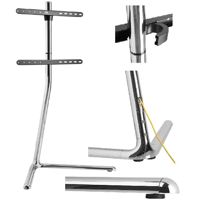 Dizajnový stojan na televíziu Fiber Mounts M8C68 Stojan konferenčný stolík na televíziu 42-70", nosnosť 40kg, VESA štandard, výška 134cm Veľmi pekný dizajnový televízny stojan / televízny konferenčný stolík, ktorý je vhodný do moderných domácností, kancelárií a reprezentatívnych priestorov. Stojan má minimalistický vzhľad, celá konštrukcia je chrómed. Dizajnový Tv stojan Fiber Mounts M8C68 je vhodný na televízie s uhlopriečkou 42-70" s hmotnosťou do 40kg, podporuje VESA 200x200 až 600x400 a všetka kabeláž je možné viesť skryte konštrukciou stojana. Dizajnový chrómedý televízny stojan konferenčný stolík na Tv 42-70" Fiber Mounts M8C68 Technické údaje: nosnosť 40kg podpora VESA štandardov 200x200 až 600x400 ideálne na televízie s uhlopriečkou 42" až 70" (107cm až 180cm) výška stojana 1345mm systém pre skryté vedenie kabeláže celochrómedá konštrukcia výborná stabilita unikátny dizajn minimalistický štýl moderný, štýlový farba chrómedá záruka 3 roky Moderný dizajnový televízny stojan v chróme, ideálny do moderných priestorov, obývačiek, firiem, kancelárií a reprezentatívnych priestorov - Fiber Mounts M8C68 Dizajnový televízny stojan Fiber Mounts M8C68 podporuje VESA štandardy: VESA 200x200 VESA 300x200 a 200x300 VESA 300x300 VESA 400x200 a 200x400 VESA 400x300 a 300x400 VESA 400x400 VESA 600x400 Televízny stojan v modernom chrómoch provedení, ktorý je ideálnou náhradou klasického televízneho stolíka. Tento stojan má unikátnu veľmi peknú konštrukciu, ktorá vynikne v každom priestore. Stojan je vhodný do moderných domácností, kancelárií alebo reprezentatívnych priestorov.