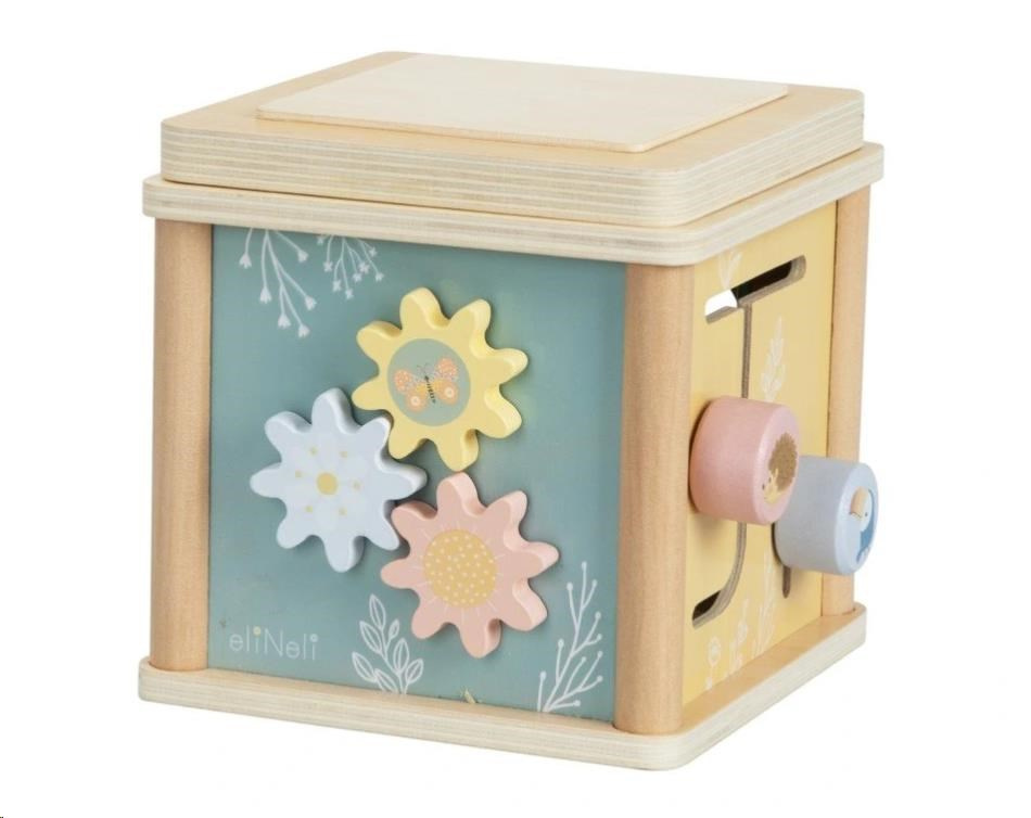 Drevená kocka s aktivitami predstavuje hneď 5 hračiek v jednej. Každá strana aktivity kocky je originálna, prináša nové dobrodružstvo a zdokonaluje detské zručnosti. Herné prvky, pastelové farby a zvieratká z lesa aj zo ZOO motivujú deti ku hre a dôslednému preskúmavaniu. Deti pri hre s activity cube zdokonaľujú motorické zručnosti, koordináciu, logické myslenie, učia sa sústrediť a trpezlivosti.