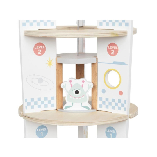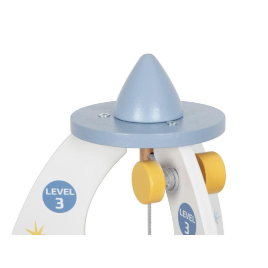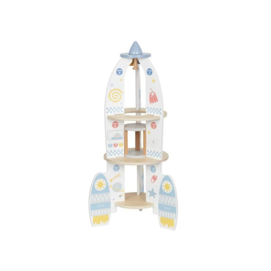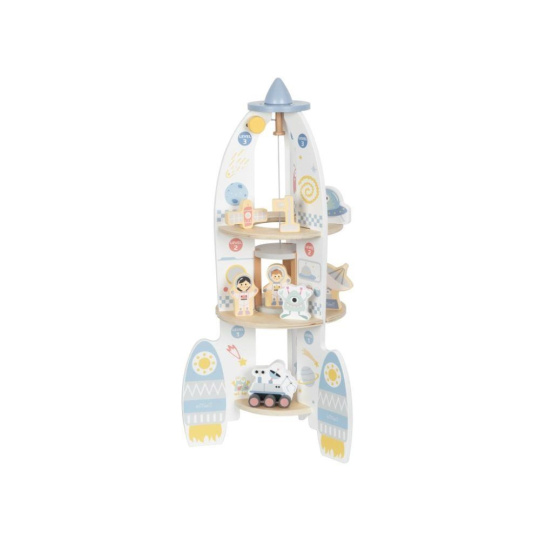 Drevená hračka v podobe rakety vyvezie vaše dieťa do vesmíru, aspoň v jeho fantázii. Drevená raketa s doplnkami a výťahom je zábavnou hračkou, s ktorou môžu deti lietať po dome či byte, hrať si s astronautmi priamo v rakete, vozíť ich výťahom rovnako ako potrebné vybavenie na misiu. Hračka dokonale potrénuje motorické zručnosti, rozvíja detskú fantáziu a kreativitu.