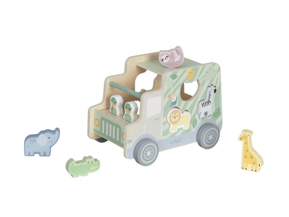 Drevené autíčko 2v1 ponúka množstvo možností na hranie. Veľké autíčko je skvelou hračkou samo o sebe, ale pretože ide o multifunkčnú detskú hračku, je zároveň aj originálnou vkladačkou s drevenými vkladacími dielikmi v podobe zvieratiek zo ZOO. Deti pri nakladaní zvieratiek a pri hre s autíčkom zdokonaľujú hrubú motoriku, koordináciu očí a rúk, logické myslenie.