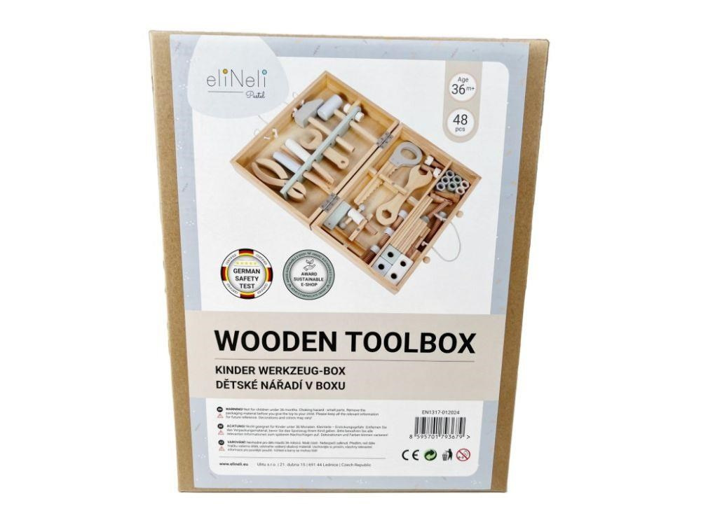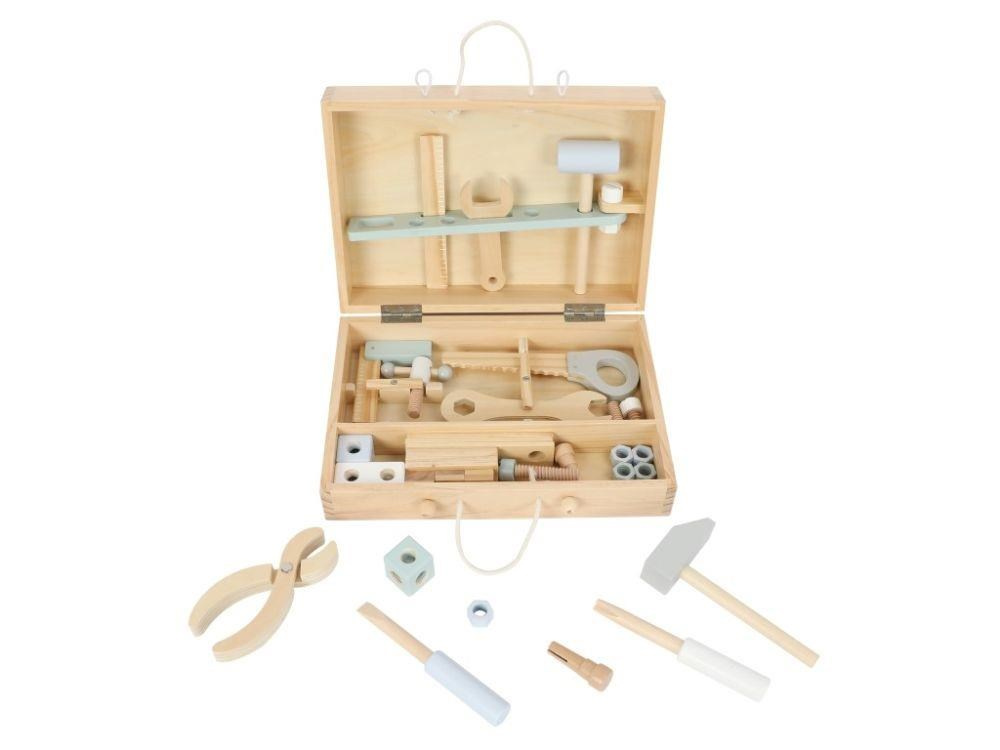 Drevené náradie krásne a prehľadne uložené v praktickom drevenom kufríku nadchne každého malého majstra. Vo vnútri kufríka nájdu deti najdôležitejšie nástroje vrátane skrutiek, matíc a ďalších doplnkov. Kufrík s pútkom a členitým vnútorným priestorom uľahčí deťom upratovanie aj prenášanie obľúbenej hračky, deti tak môžu mať svoju opravárenskú a majstrovskú sadu stále pri sebe, na dovolenke, na víkend u babičky.