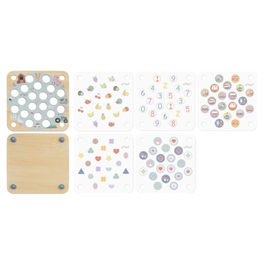 Drevené pexeso s včielkami si pre deti pripravilo 10 rôznych predlôh, rôznej obtiažnosti. Jednoduchou výmenou podkladu sa prispôsobí veku a znalostiam každého dieťaťa. Tí najmenší si zahrajú pexeso so zvieratkami, ovocím alebo základnými tvarmi, chlapci s dopravnými prostriedkami a tí najväčší šikulovia s číslami. Detské pexeso 10v1 je zábavná spoločenská hra aj vzdelávacia pomôcka v jednom.