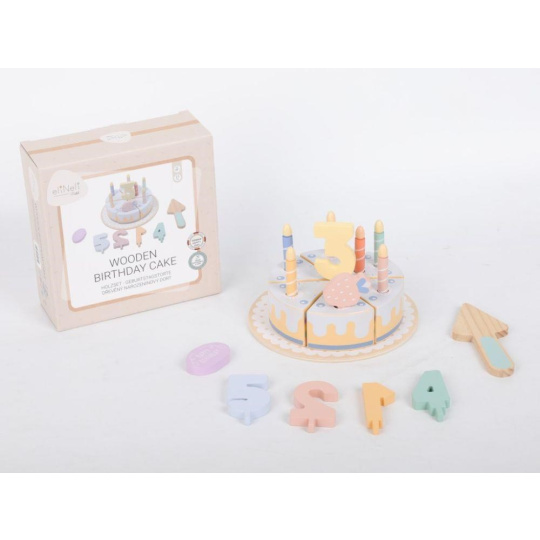 Drevený narodeninový tort so sviečkami a číslami umožní deťom sláviť narodeniny pokojne každý deň. Drevená hračka v podobe krájacieho tortu je skvelým doplnkom do detskej kuchynky aj obchodu. S dreveným tortom bude pripraviť narodeninovú oslavu pre oblúbeného plyšáka hračkou aj veľkou zábavou. Tortu môžu deti porcovať a touto dobrotou pohostiť všetkých účastníkov hostiny, predávať ju v detskom obchode, cukrárni alebo kaviarni.
