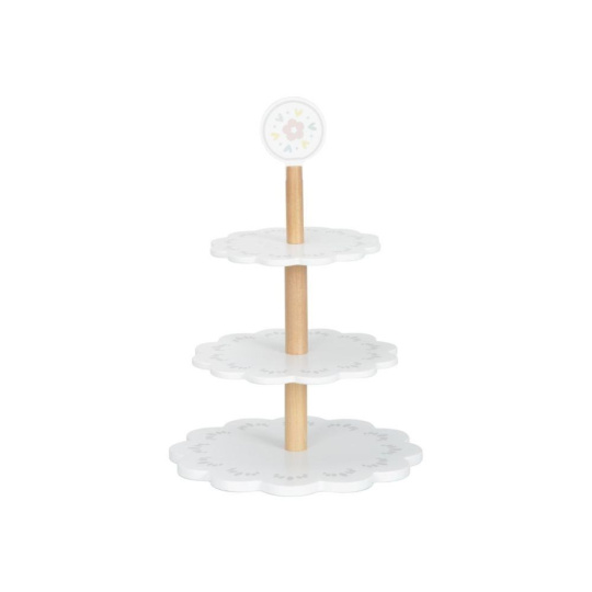 Drevený poschodový stojan s lahodne vyzerajúcimi drevenými zákuskami a cukrovinkami je ako stvorený na oslavy a čajové posedenia usporiadané pre rodičov, kamarátov aj obľúbené plyšové hračky. Drevený stojan s bohatým príslušenstvom je skvelým doplnkom do detskej kuchynky aj obchodu. Deti si môžu zahrať na cukrárov aj predavačov, rozvíjať svoju fantáziu a zdokonaľovať zručnosti.
