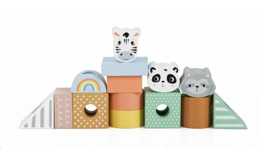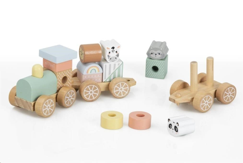 Drevený vláčik pre deti, s kockami a zvieratkami zo ZOO, je krásnou multifunkčnou hračkou aj dekoráciou do detskej izby. Jemné pastelové farby vláčik dodávajú atraktívny vzhľad a vďaka neutrálnym farbám je vhodným darčekom pre dievčatá aj chlapcov. Drevené kocky a obľúbené zvieratá môžu deti preháňať po svojom pokojíčku aj po celom dome či byte. Deti si môžu hrať so samotným vláčikom, s jeho jednotlivými vagónmi, nakladať a vykladať kocky aj zvieratká, vytvárať rôzne kombinácie alebo si hrať so samotnými kockami. Pri hre s vláčikom a jeho časťami deti zdokonaľujú motorické zručnosti, koordináciu očí a rúk, logické myslenie, rozvíjajú predstavivosť a kreativitu.