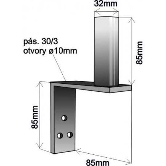 Držák antény na zeď mini, galvanický zinek, délka 8,5cm, výška 8,5cm