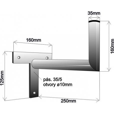 Držák antény na zeď mini, tvar T, galvanický zinek, délka 25cm