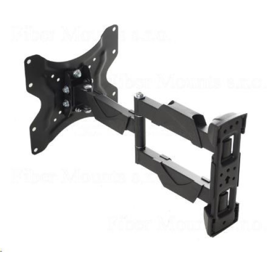 Držiak LED plazma LCD televízie Fiber Mounts DT742 Kvalitný a cenovo dostupný držiak na zavesenie TV 13-42 palcov na stenu, otáčanie do strán, náklon, nastaviteľná vzdialenosť, korekcia roviny, krytky na káblovú správu Výnimočný pomer kvality a ceny robí z držiaka Fiber Mounts DT742 jeden z najpredávanejších držiakov na slovenskom trhu. Jednoduché a bezpečné zavesenie všetkých typov a značiek televízorov s uhlopriečkou 13-42 palcov, jednoduché nastavenie do požadovanej polohy - otáčanie do strán, náklon, vzdialenosť od steny, korekcia roviny. Oceľová konštrukcia držiaka je osadená dizajnovými krytkami na fixáciu káblov. Dodávame vrátane inštalačného materiálu. Držiak na LED plazmové a LCD televízie s uhlopriečkou 13-42 palcov, otáčateľný do strán, sklápací, dĺžkovo nastaviteľný, VESA štandard, nosnosť 25kg, vynikajúci pomer kvality a ceny, kryty káblov, záruka 3 roky - Fiber Mounts DT742 Technické údaje: nosnosť 25kg podporuje VESA štandardy 75x75 až 200x200 odporúčaná uhlopriečka televízora 13-42 palcov otáčanie do strán +/- 90° náklon nahor alebo nadol +/- 12° korekcia roviny +/- 3° nastaviteľná vzdialenosť od steny v rozmedzí 59 až 400mm dizajnové krytky na fixáciu káblov výnimočná kvalita oceľová konštrukcia zaistenie TV proti vysadeniu jednoduchá a rýchla montáž farebné prevedenie čierne záruka 3 roky Držiak Fiber Mounts DT742 podporuje VESA štandardy: VESA 75x75 VESA 100x100 VESA 200x100 VESA 200x200