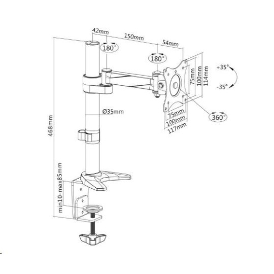 Držiak monitora na stôl Fiber Mounts MC717 Stolný držiak na monitor 15÷30", otočný, sklopný, výškové nastavenie, funkcia pivot Veľmi pekný, kvalitný a hlavne cenovo dostupný stolový držiak na zavesenie monitorov s uhlopriečkou 15÷30 palcov. Plná nastaviteľnosť polohy obrazovky - otáčanie do strán, náklon, výšková regulácia, horizontálne alebo vertikálne otočenie obrazovky, korekcia roviny. Stolný držiak MC717 podporuje VESA štandard 75x75 a 100x100, odporúčané maximálne zaťaženie je 8kg. Súčasťou balenia je montážny materiál a 2 typy uchytenia na stolovú dosku - na kraj stolu alebo skrz stolovú dosku kdekoľvek do priestoru. Držiak je výbornej kvality a naozaj pekného dizajnu. Držiak na monitor do kancelárie, domácnosti, firmy alebo do škôl -Fiber Mounts MC717 - otočný, sklopný, výškovo nastaviteľný, funkcia pivot, TOP kvalita, dizajn, vynikajúca cena za stolový držiak Technické údaje: nosnosť 8kg podpora VESA štandardu 75x75 a 100x100 odporúčame na monitor s uhlopriečkou 15" až 30" otáčanie do strán +180° / -180° náklon +35° / -35° horizontálne alebo vertikálne otočenie obrazovky monitora - funkcia pivot korekcia roviny maximálne oddialenie monitora od nosníka 246mm 2 typy uchytenia na stôl - na kraj stola / skrz stôl kdekoľvek do priestoru minimálna sila stolovej dosky 10mm maximálna sila stolovej dosky 85mm priemer nosníka 35mm výška nosníka od stolovej dosky 400mm nastaviteľná výška ramena vynikajúca kvalita snadné nastavenie polohy obrazovky monitora materiál hliník farba strieborná + chróm záruka 3 roky