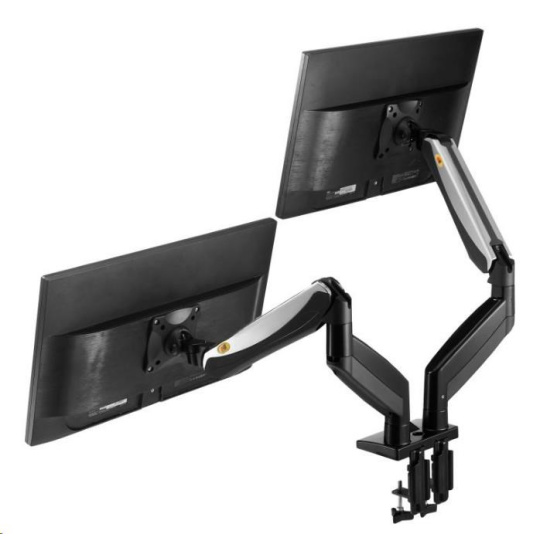 Nastaviteľný držiak pre dva monitory s hmotnosťou od 2 kg do 8 kg, TOP dizajn a kvalita Veľmi kvalitný stolný držiak na zavesenie 2 monitorov na stolovú dosku v kancelárii, pracovni alebo domácnosti. Monitory je možné nezávisle otáčať do strán, nakloniť, posúvať. Môže byť tiež nastavená výška od stolovej dosky, horizontálne aj vertikálne otáčanie obrazovky, korekcia roviny. Stačí raz nastaviť hmotnosť Vášho monitora na držiaku a ďalej už nemusíte používať žiadny nástroj. Veľmi pekný dizajn, kvalitná bezpečná konštrukcia, ľahká manipulácia. Polohovateľný stolný držiak na dva monitory do kancelárie Technické údaje: celková nosnosť 16kg zavesenie 2 monitorov s hmotnosťou 2-8kg odporúčame na monitory 19" až 30" nakoň +55°/-8° natočenie monitora vpravo-vľavo o 180° otáčanie ramena o 360° funkcia PIVOT - otočenie monitora o 360° minimálna výška monitora od pracovnej dosky 230 mm (stred monitora) maximálna výška monitora od pracovnej dosky 530 mm (stred monitora) maximálna hrúbka pracovnej dosky 90 mm nastaviteľná vzdialenosť do 625 mm Korekcia roviny 2x USB port Systém pre skryté vedenie káblov dva typy uchytenia ku stolu - na okraj alebo cez dosku vestavená pružina pre jednoduché nastavenie výšky vysoká kvalita s dôrazom na detail moderný dizajn vyrobené z hliníka a zliatiny ocele ľahká a rýchla inštalácia farebné prevedenie čierne+chrom záruka 5 rokov Stolný držiak F185A podporuje VESA štandard: 75x75 100x100