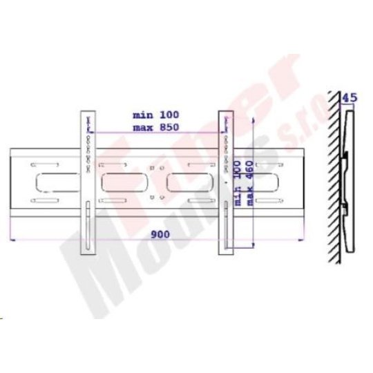 Držiak TV EDBAK TWB1 Televízny držiak vhodný na LCD LED a plazmové televízie s uhlopriečkami od 107cm do 160cm pre fixné zavesenie na stenu. Profesionálna konštrukcia najvyššej kvality, vysoká bezpečnosť, nosnosť 80kg. Zabezpečenie obrazovky proti vysadeniu. Technické údaje: nosnosť 80kg podporuje VESA štandard 100x100 až 840x460 na televízory, monitori a displeje s uhlopriečkou 42" až 85" vzdialenosť televízora od steny 45mm zabezpečenie proti vysadeniu televízora súčasťou balenia nie je montážny materiál profesionálna konštrukcia materiál silnostenná oceľ čierna alebo strieborná farba záručná doba 10 rokov Držiak podporuje VESA štandardy: VESA 100x100 VESA 200x100 a 100x200 VESA 200x200 VESA 300x200 a 200x300 VESA 300x300 VESA 400x200 a 200x400 VESA 400x300 a 300x400 VESA 400x400 VESA 500x300 VESA 600x400 VESA 800x400 VESA max. 840x460