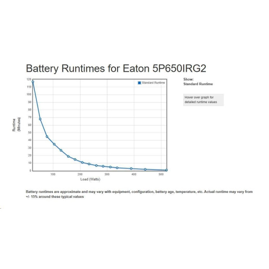 - UPS 5P môže merať energetickú spotrebu v kWh, ktorú je možné sledovať buď na LCD alebo pomocou softvéru Eaton Intelligent Power® Software Suite.