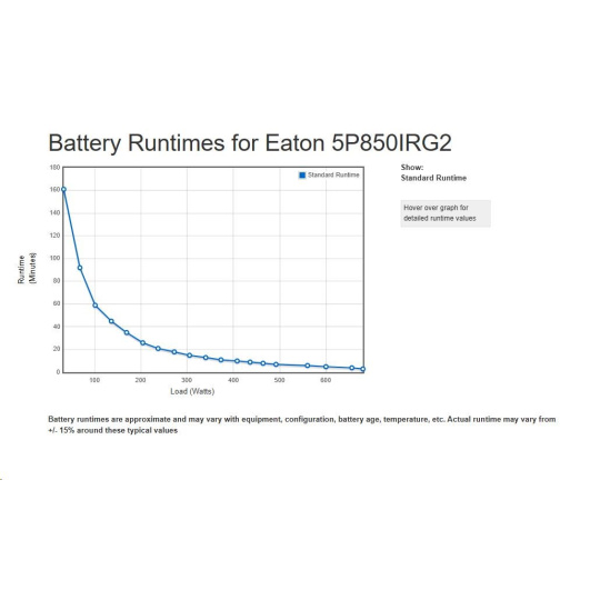 - UPS 5P môže merať energetickú spotrebu v kWh, ktorú je možné sledovať buď na LCD alebo pomocou softvéru Eaton Intelligent Power® Software Suite.