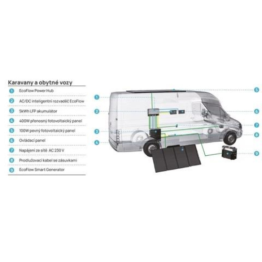 Minimalistický dizajn vám umožní pomocou špeciálnych káblov jednoducho a rýchlo prepojiť všetky zdroje energie a akumulátory s Power Hubom.
