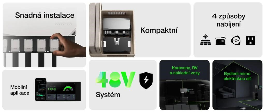 V zariadení Power Hub nájdete dva MPPT regulátory, jeden nabíjač akumulátorov s MPPT, jeden DC-DC menič a invertorový nabíjač. To vo výsledku znamená oveľa menej potrebných súčiastok a kabeláže. Všetko je integrované do boxu s veľmi podareným dizajnom, takže v interiéri Power Hub navyše aj štýlovo vyzerá.
