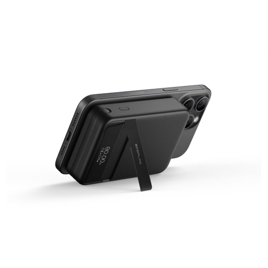 Táto powerbanka zároveň výborne kombinuje elegantný dizajn s praktickosťou. To dokazuje aj zaujímavý a praktický detail: Pevné magnetické uchytenie mobilu pomocou magnetov N52 a vestavený stojan umožňujú jej využitie aj ako stojan, ktorý zabezpečí uchytenie mobilu na podložke, a to v horizontálnej alebo vertikálnej polohe. Bude tak pripravená napríklad na pohodlné sledovanie videí alebo čítanie správ.