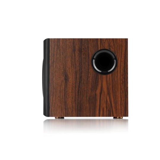 Vysokokvalitný drevený vinyl vytvára skvelý zvuk a vzhľad. Preglejka MDF minimalizuje rezonanciu skrinky a poskytuje krištáľovo čistý zvuk. Je vybavený 4" stredotónovými reproduktormi, výškovými reproduktormi s planárnou membránou triedy Hi-Fi a 8" subwooferom pre silný, dunivý zvuk.