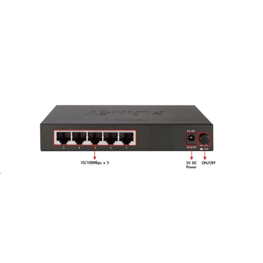 Planet FSD-503 Switch, 5x 10/100Base-TX, 10", kov, fanless