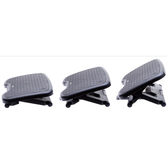 Popis produktu: Nastaviteľná opierka nôh Nastaviteľná výška a uhol pre maximálny komfort a pohodlie Výška: 110 - 124 mm Protišmykové podložky pre väčšiu stabilitu Farba: čierna Masážny hrboľatý povrch pre unavené nohy..