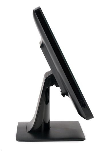 " Velmi stabilní naklápěcí základna; ovládací panel po stranách (proti nechtěným změnám nastavení), není vidět z pozice zákazníka a nevytváří tak rušivý dojem