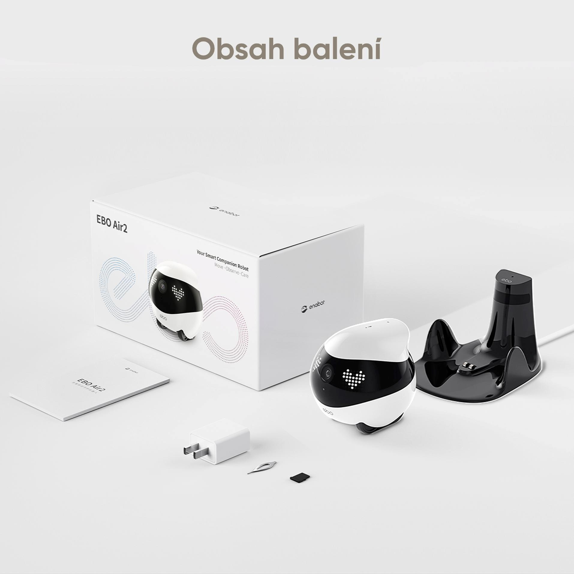 EBO Air 2 je všestranný mobilný robot-spoločník pre váš domov, ktorý prináša inteligentný dohľad, komunikáciu a interaktivitu v jednom zariadení. Vďaka pohybu na gumových pásoch dokáže prechádzať domácnosťou, sledovať a nahrávať, na rozdiel od statických IP kamier. Funguje ako domácy komunikátor, ktorému môžete zavolať a skontrolovať svojich blízkych. Vďaka AI chatbotovi s podporou LLM modelov dynamicky reaguje na váš hlas a vie inteligentne odpovedať. Funkcia AI chatbota podporuje angličtinu, nemčinu, francúzštinu, španielčinu, portugalčinu, taliančinu, japončinu, kórejčinu a poľštinu.