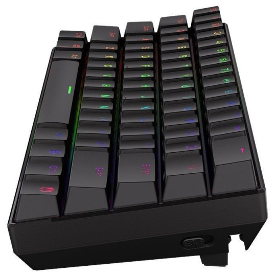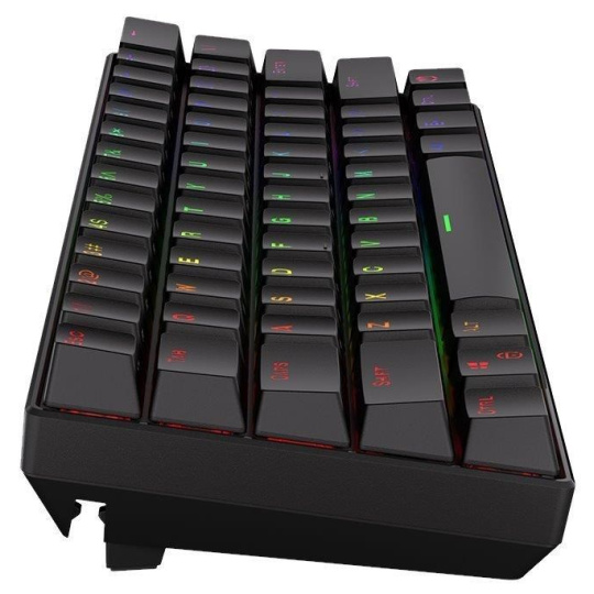 Bezdrôtová mechanická herná klávesnica v kompaktnom prevedení je vybavená spínačmi Kailh Brown s dokonalou odozvou a životnosťou až 70 miliónov stiskov. Klávesy sú RGB podsvietené a ponúkajú možnosť vlastného nastavenia. Klávesy sú navyše tiež plne programovateľné, vďaka čomu je možné klávesnicu individualizovať presne podľa potrieb hráča a hraného hry. Samozrejme, nechýba ani funkcia Anti-Ghosting a N-Key rollover. Pripojenie k počítaču je možné realizovať buď bezdrôtovo cez Bluetooth alebo mini USB prijímač a technológiu 2,4 GHz, alebo aj drôtovo pomocou USB kábla, ktorý zároveň slúži na nabíjanie.