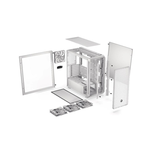 Arx 700 White ARGB je biele šasi kompatibilné so základnými doskami ATX a menšími doskami. Skriňa je určená pre špičkové komponenty, podporuje chladiče o priemere až 360 mm a pojme až 8 ventilátorov – vrátane 4 predinštalovaných jednotiek Stratus 140 White PWM ARGB, ktoré zabezpečujú tichý chod a výkonné prúdenie vzduchu.