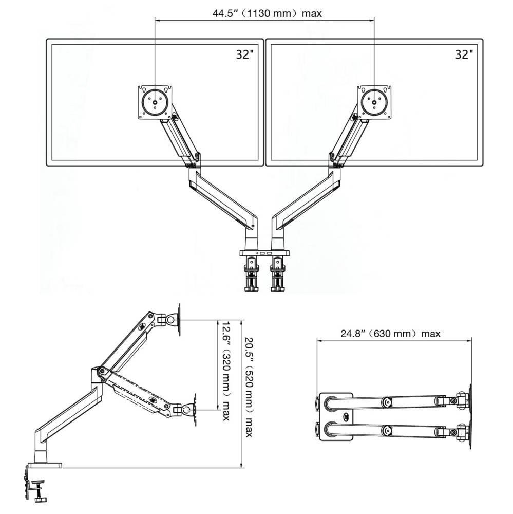 Kancelársky stolný držiak na 2 monitory NB G32 Ergonomický stolný držiak na 2 monitory 17-32", nastaviteľná výška, otáčanie, naklápanie, vysúvanie, PIVOT, vedenie káblov, VESA 75x75 a 100x100, nosnosť 30kg Profesionálny dizajnový stolný držiak na 2 monitory 17-32" najvyššej kvality, ľahko polohovateľný a ergonomický. Výšková poloha monitorov od stolovej dosky 200-530mm, otáčanie do strán +/-360°, naklápanie monitorov +85°/-30°, maximálna vzdialenosť od uchytenia 630mm, PIVOT, USB port, 2 typy stolových držiakov, aretácia otáčania a vysúvania, VESA 75x75 a 100x100, nosnosť 30kg Kancelársky stolný držiak na 2 monitory, plne ergonomický NB G32 Technické údaje: celková nosnosť 30kg plynová pružina s nastavením na hmotnosť každého monitora 2-15kg podpora VESA štandardov 75x75 a 100x100 plynulé nastavenie výšky monitorov od stolovej dosky 200-530mm max. vysunutie od stolového uchytenia 630mm naklápanie monitorov +85° / -30° otáčanie každého ramena do strán +/- 360° funkcia PIVOT (rotácia monitorov +/-360°) systém vedenia káblov aretácia ramien v polohe (červíky) USB port na podstavci 2 typy stolových držiakov (na okraj alebo do priestoru) najvyššia kvalita s dôrazom na detail záruce 3 roky Nezávislé polohovanie monitorov 17-32" na stolnom držiaku NB G32 Kancelársky držiak na 2 monitory podporuje VESA štandardy: VESA 75x75 VESA 100x100 možnosť zakúpenia vrátane VESA nástavca 200x100 (viz. vyššie zvoľte VESA štandard) možnosť zakúpenia vrátane VESA nástavca 200x200 (viz. vyššie zvoľte VESA štandard) 2 typy stolových držiakov: na okraj stola, max. hrúbka stolovej dosky 80mm do priestoru stolovej dosky cez otvor (10-50mm), max. hrúbka stolovej dosky 90mm