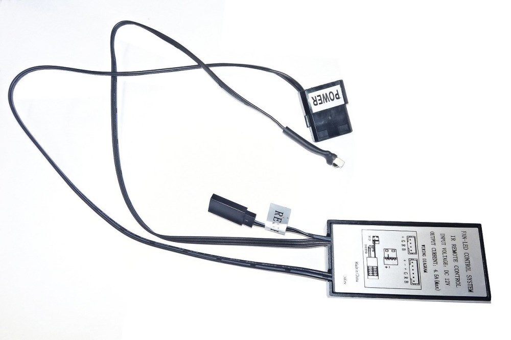 - diaľkové ovládanie (možnosť voľby farby podsvietenia s možnosťou vypnutia, riadenie otáčok ventilátorov s možnosťou vypnutia)