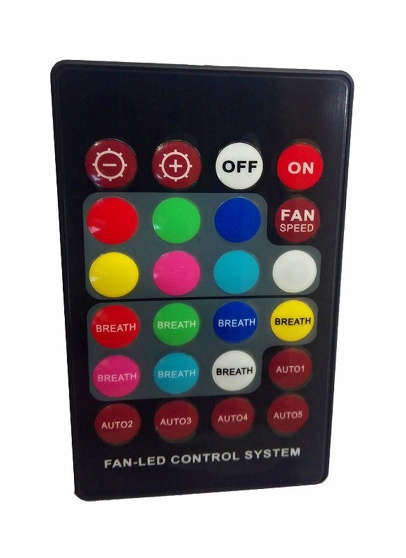 - vzdialené ovládanie (možnosť voľby farby podsvietenia s možnosťou vypnutia, riadenia otáčok ventilátorov s možnosťou vypnutia)