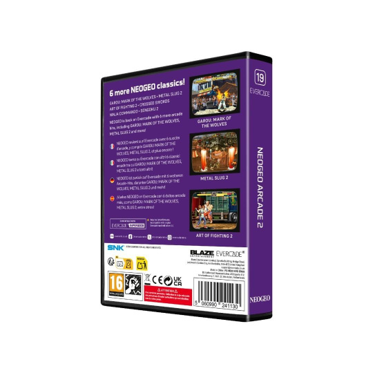 - Obsahuje 6 hier: CROSSED SWORDS (1991), NINJA COMMANDO (1992), SENGOKU 2 (1993), ART OF FIGHTING 2 (1994), METAL SLUG 2 (1998) a GAROU: MARK OF THE WOLVES (1999)