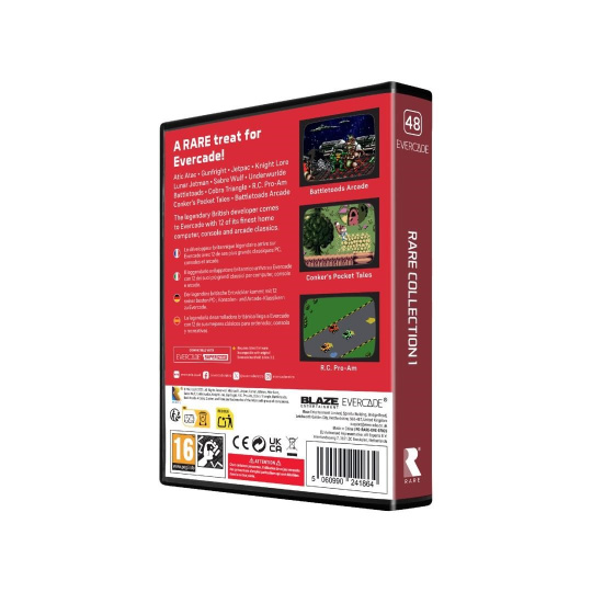 Rare Collection 1 obsahuje 12 počítačových, konzolových a arkádových titulov od legendy britského herného vývoja! Objavte dejiny jedného z najlepších britských vývojárov vďaka tejto kolekcii klasik so štýlovým obalom a farebným anglickým manuálom. Oslava 20 rokov RARE je povinnou kolekciou pre fanúšikov Evercade a nadšencov do retro hrania.