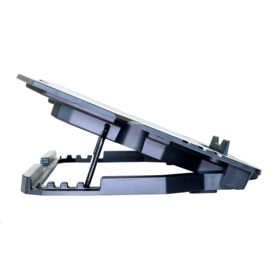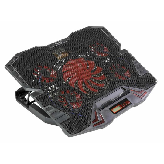 Herný nastaviteľný chladiaci stojan pre notebooky do veľkosti 15.6". 1x 120 mm a 4x 60 mm ventilátor. 2x USB 2.0. Regulácia otáčok ventilátora, displej.