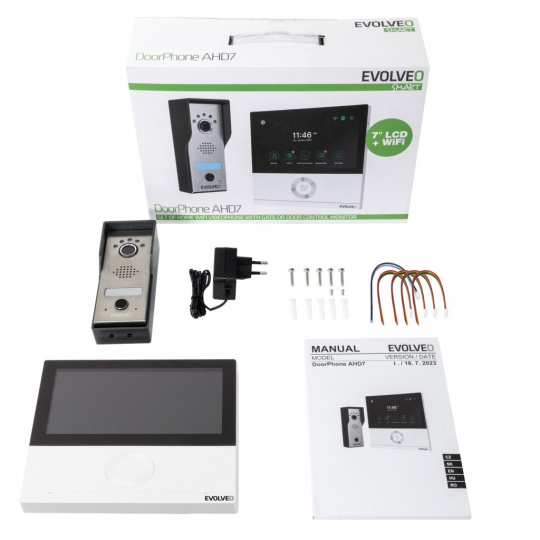 EVOLVEO DoorPhone AHD7, Sada domácího WiFi videotelefonu s ovládáním brány nebo dveří bílý monitor